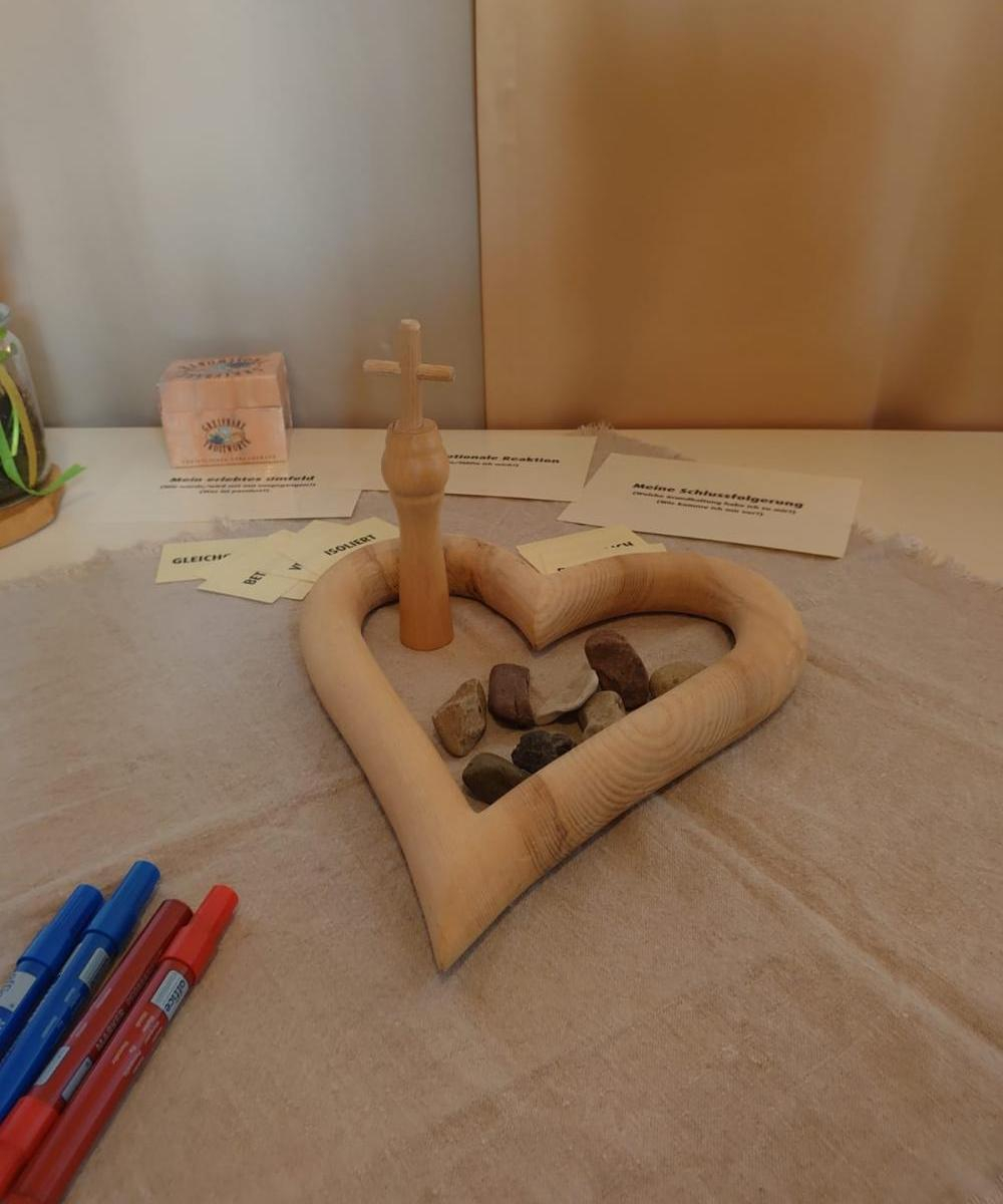 Was passiert mit unserem Herzen, wenn wir Leid/ Verletzungen erfahren, wie versucht der Mensch sich zu schützen und wie kann ein Herz mit Gottes Hilfe wieder heil werden? Anhand von selbst kreierten hölzernen Modellen und vielen Beispielen aus Alltag und Arbeit von Hans, bekamen wir Einblicke in das biblisch fundierte Seelsorgekonzept " Heiles Herz, heile Persönlichkeit".